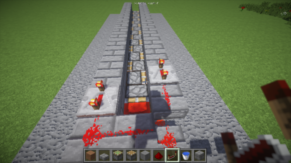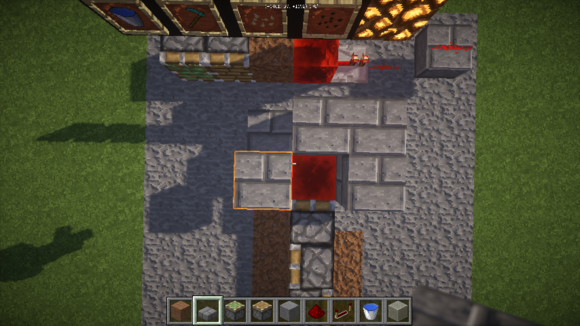 注意:在这个位置的石砖必须是石半砖 不然会阻断之后的红石线