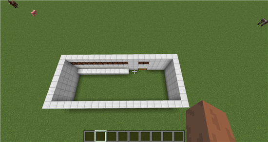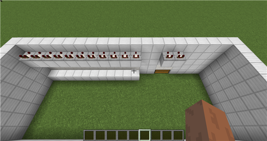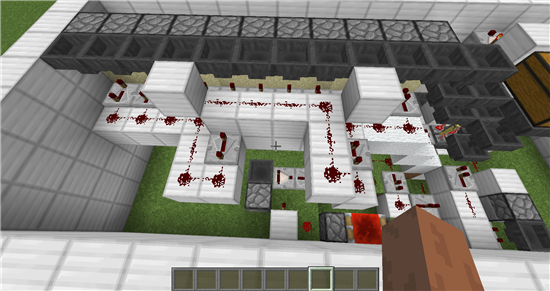 在这里放置漏斗和投掷器,朝向如箭头所示,在左边的投掷器里塞满物品