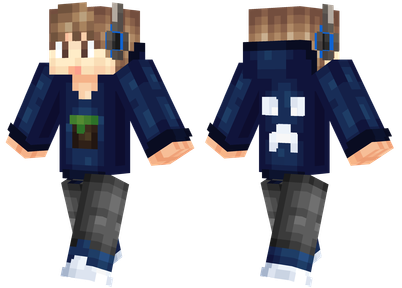 戴着耳机和穿帽衫的Minecraft游戏玩家。